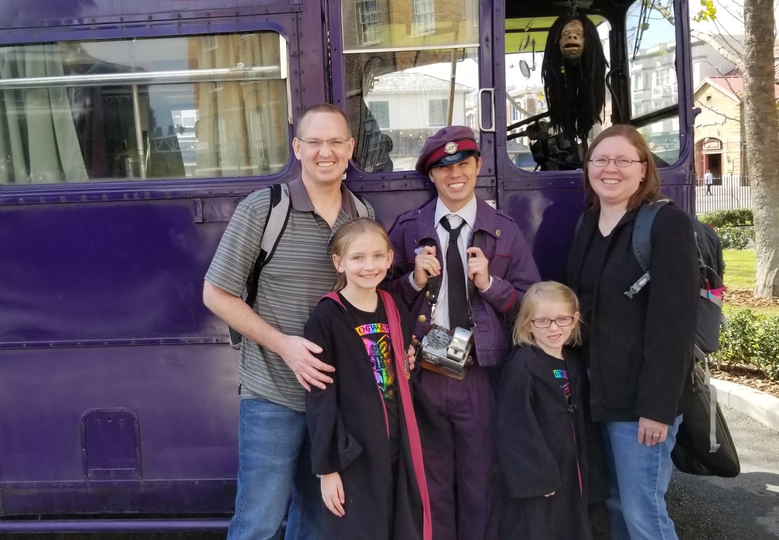 On March 8th Kent and I took a 6am flight out of DC to Orlando. It was only about a two hour flight, so we landed at 8am. We rented a car and drove straight to Universal Studios. It was about 10am by the time we drove there, found a place to park and went through the line and met the Stinson family.